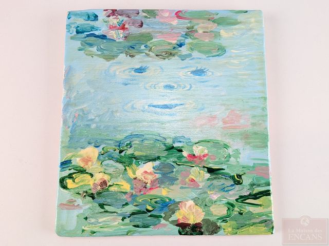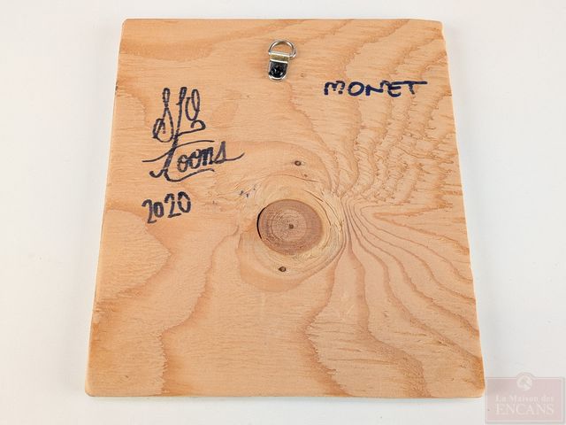 Slo TOONS- Acrylique sur panneau signée à l'endos, mesurant 7.5x6.75 pouces et titrée Monet