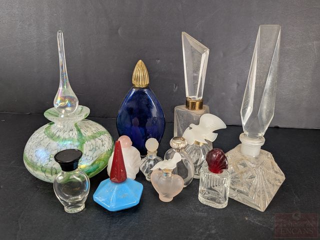 Lot de bouteilles de parfum et parfumeuses en verre, la plus grande mesurant 6 pouces