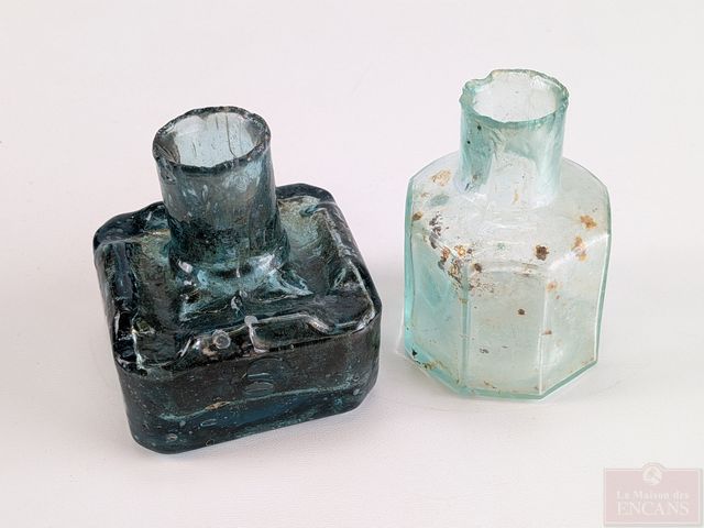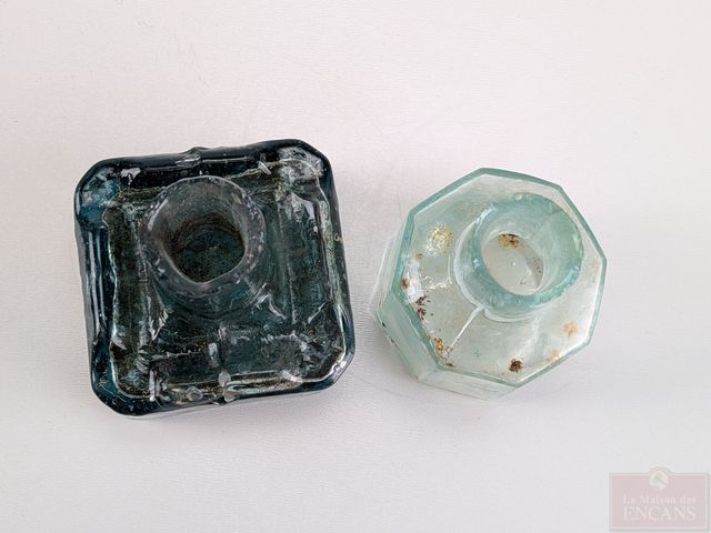 Lot # 68 - Deux anciens encriers en verre, le plus grand mesurant 2.25 pouces de hauteur