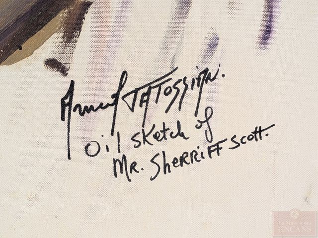 Lot # 120 - Armand TATOSSIAN- Huile sur toile signée, représentant un portrait de Sherriff Scott, datée 1970 et mesurant 25x21 pouces