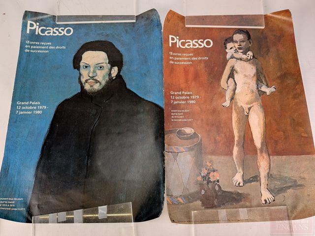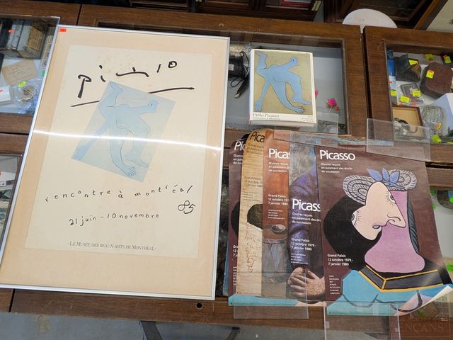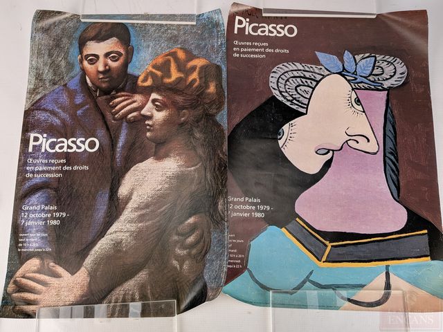 Lot # 50 - Lot Picasso comprenant affiche de l'exposition Rencontre à Montréal au Musée des Beaux-Arts en 1981, mesurant 31.5x22.5 pouces, livre consacré à cette exposition, ainsi que plusieurs affiches de l'exposition Picasso du Grand palais, à Paris en 1979 et 1980, mesurant 23.5x16.5 pouces