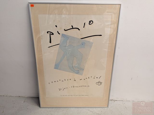 Lot Picasso comprenant affiche de l'exposition Rencontre à Montréal au Musée des Beaux-Arts en 1981, mesurant 31.5x22.5 pouces, livre consacré à cette exposition, ainsi que plusieurs affiches de l'exposition Picasso du Grand palais, à Paris en 1979 et 1980, mesurant 23.5x16.5 pouces
