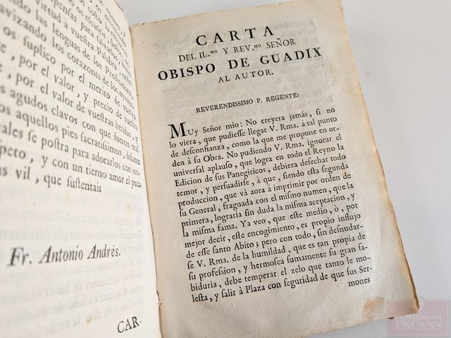 Lot # 25 - Livre ancien Le carême d'Antonio Andrès datant de 1777, tome I en espagnol, imprimé sur papier parchemin avec couverture en vélin, mesurant 8.5 pouces