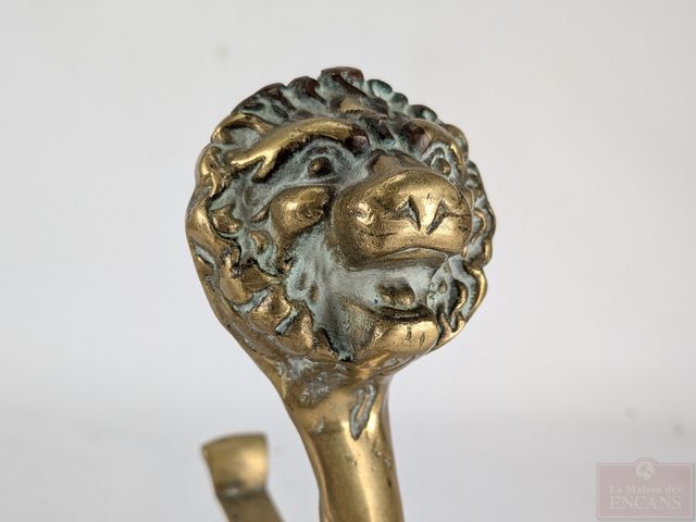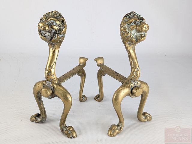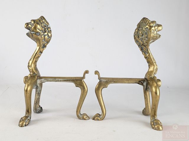 Lot # 34 - Paire de chenets de foyer de chambre victoriens en laiton, mesurant 10.5 pouces de hauteur chacun