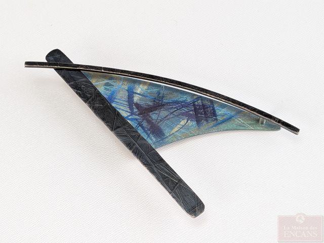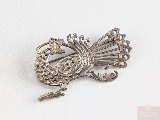 Lot # 92 - Broche en argent et titane signée Jean-Yves Nantel, mesurant 3 pouces de largeur, ainsi qu'une broche en argent représentant un paon et mesurant 2 pouces de largeur