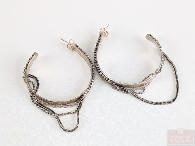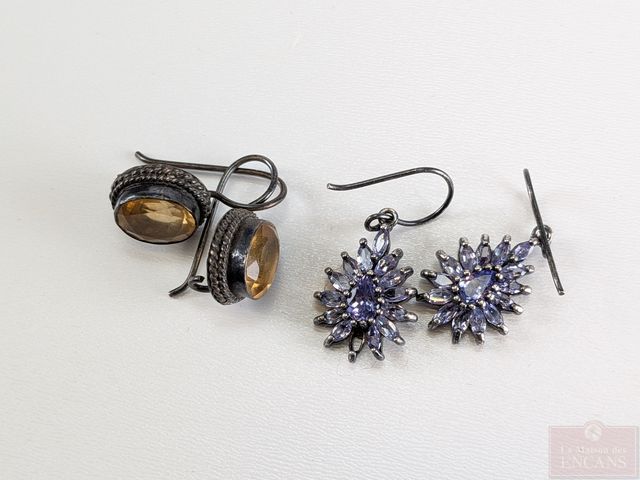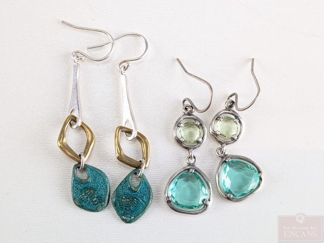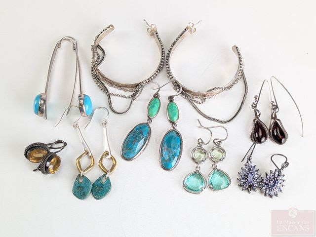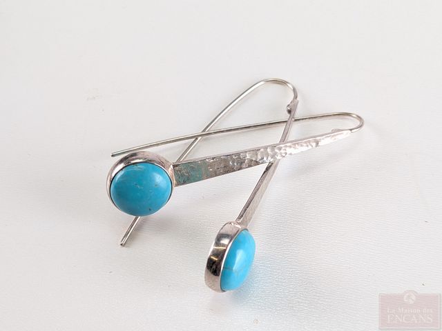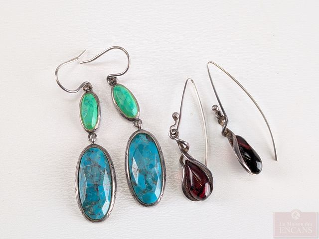 Lot de bijoux en argent, dont paire de boucles d'oreilles serties de turquoises, mesurant 2 pouces de hauteur et autres