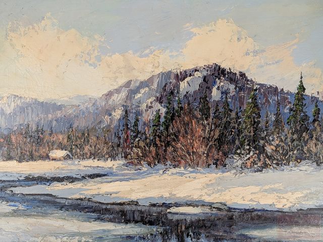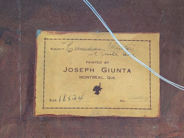 Joseph GIUNTA- Huile sur panneau signée, datée 1943, mesurant 18x24 pouces et titrée Canadian Winter