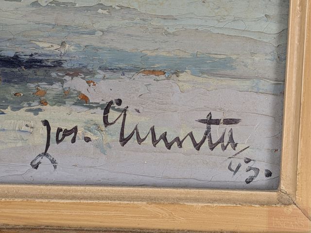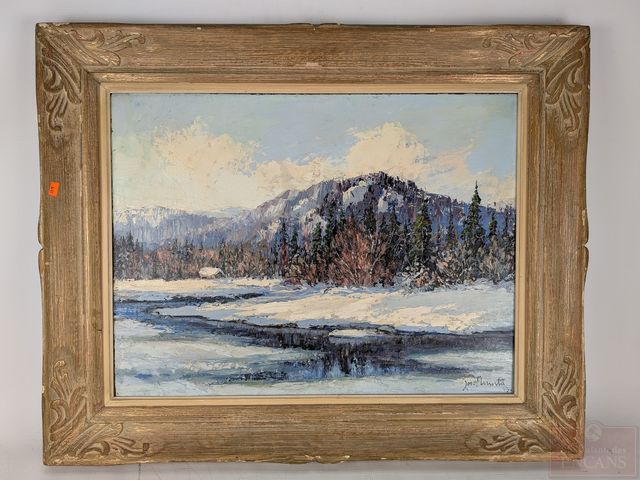 Lot # 19 - Joseph GIUNTA- Huile sur panneau signée, datée 1943, mesurant 18x24 pouces et titrée Canadian Winter