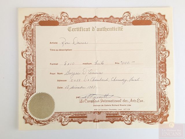 Lot # 114 - Ron DAVIES- Huile sur toile signée, datée 1987 et mesurant 10x8 pouces, avec certificat