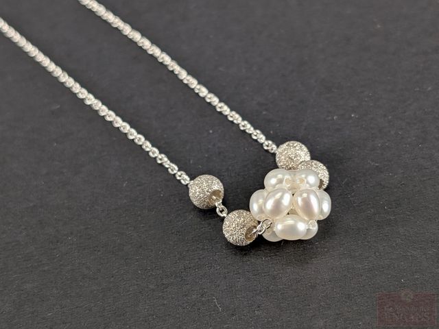 Lot # 82 - Pendentif et chaine en argent avec perle, mesurant 16 pouces de longueur