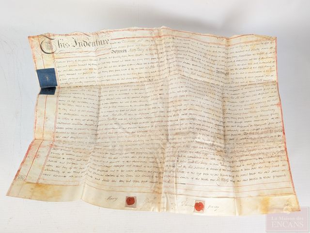 Lot # 67 - Ancien document manuscrit anglais sur vélin avec sceau de cire, datant de 1797 et mesurant 24x17 pouces
