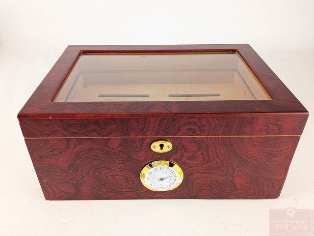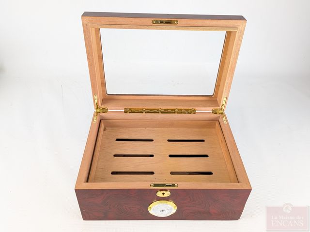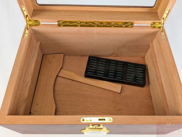 Lot # 40 - Humidor à cigares en bois de cèdre d'Espagne avec hydromètre intégré, mesurant 13.5 pouces de largeur