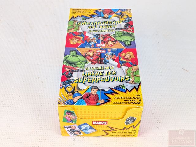 Lot # 83 - Boite de paquets d'autocollants de collection Marvel - Libère tes superpouvoirs, contenant 100 paquets neufs