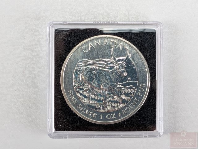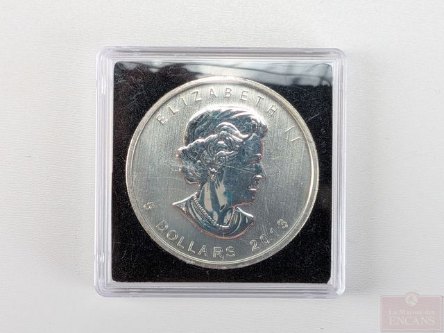 Pièce canadienne d'une once d'argent pur 9999 cinq dollars 2013, encapsulée, sans taxes