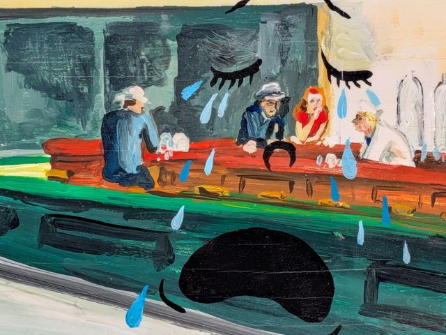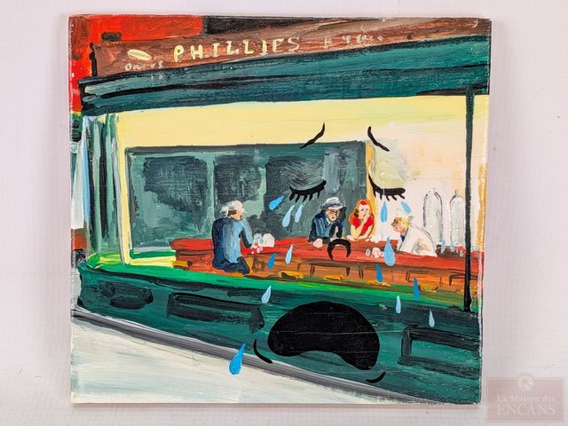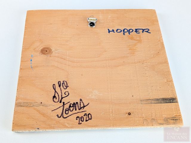 Slo TOONS- Huile sur toile signée à l'endos, datée 2020, mesurant 7x7 pouces et titrée Hopper