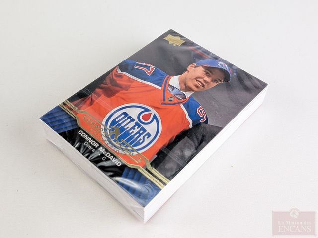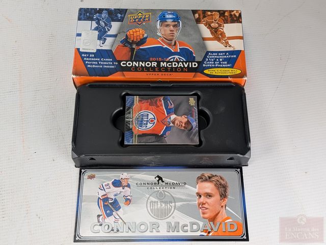 Collection de vingt-quatre cartes de hockey Upper Deck Connor McDavid, dans son emballage original, avec la grande carte