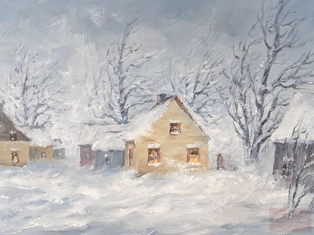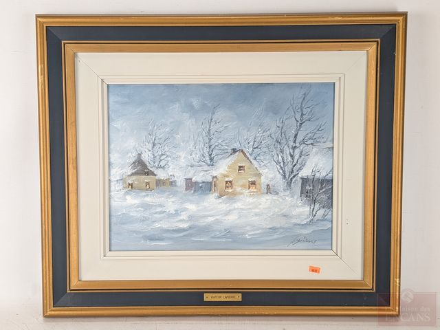 Lot # 53 - Viateur LAPIERRE- 'La tempête' huile sur toile signée, mesurant 12x15.5 pouces
