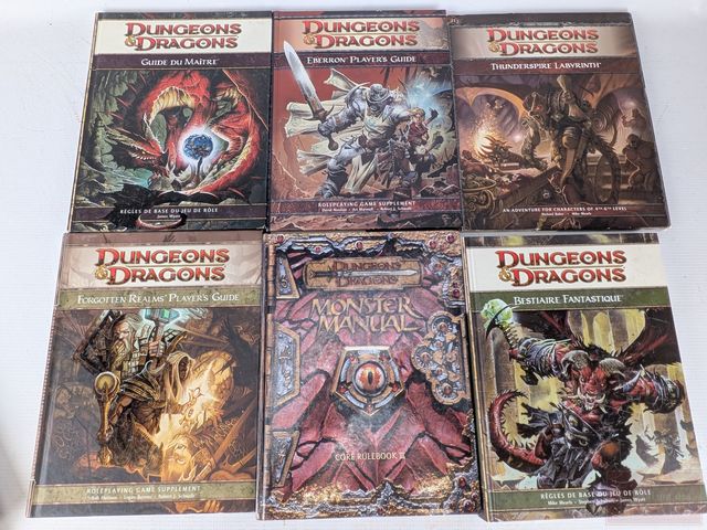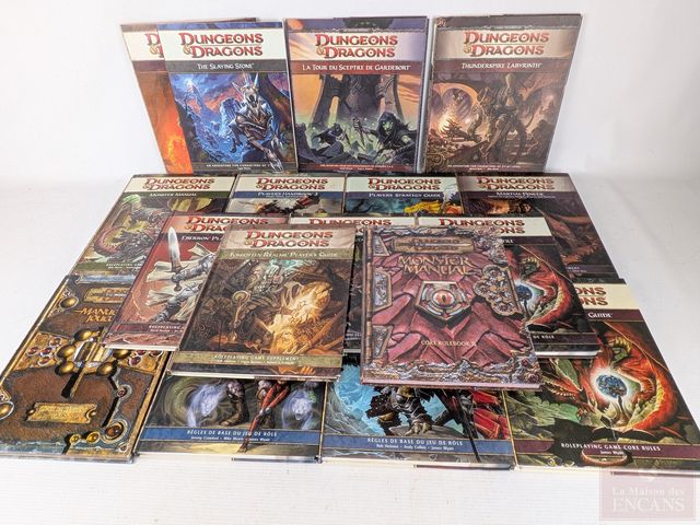 Lot # 126 - Lot de livres de Donjons et dragons des troisième et quatrième éditions, comprenant guide du joueur, guide et écran du maitre de jeu, livres de scénarios d'aventures et autres livres de règles additionnelles SOLD