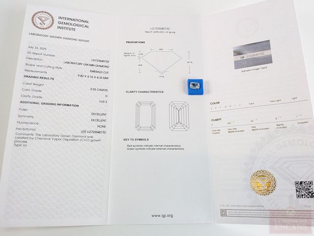 Lot # 90 - Diamant de laboratoire de 3.03 carats, couleur H, coupe émeraude, clarté VVS2, avec certificat