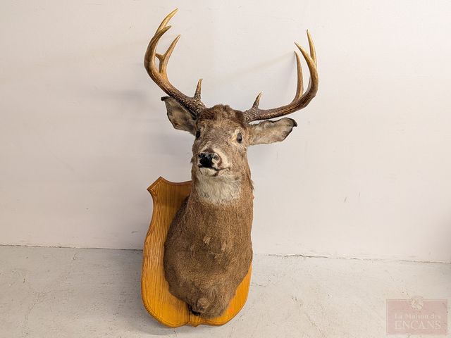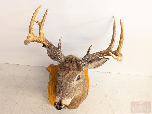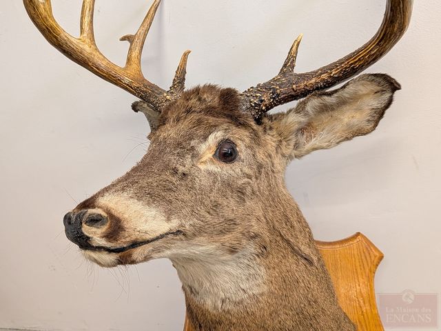 Lot # 152 - Trophée de chevreuil naturalisé avec son panache, monté sur bois et mesurant 41 pouces de hauteur SOLD