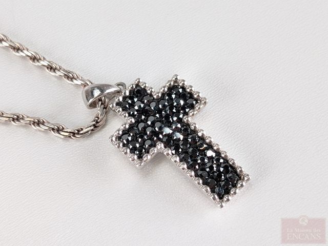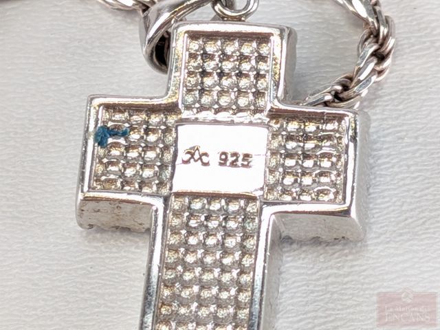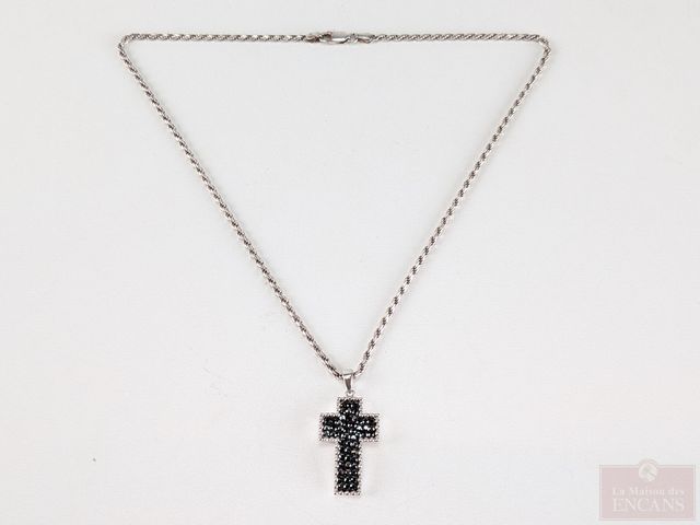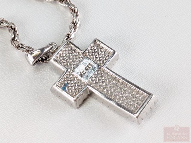 Lot # 219 - Croix et chaine en argent serties de pierres, la chaine mesurant 18 pouces de longueur SOLD