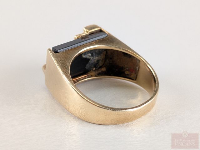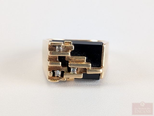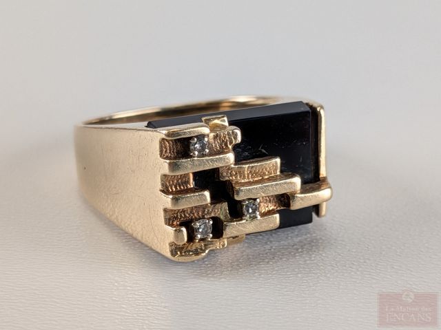 Lot # 105 - Superbe bague des années 60 en or 10k sertie d'un onyx et de diamants, taille 10.75