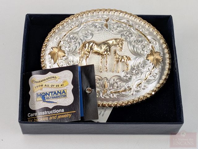 Boucle de ceinture Montana Silversmith, mesurant 4 pouces de largeur, dans sa boite d'origine avec document