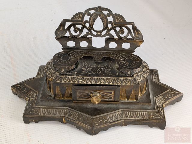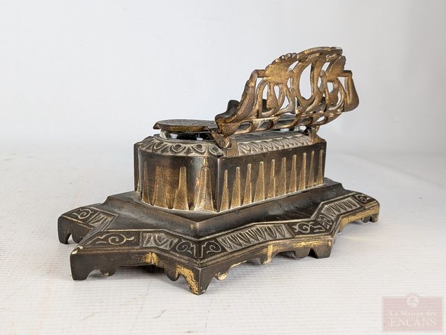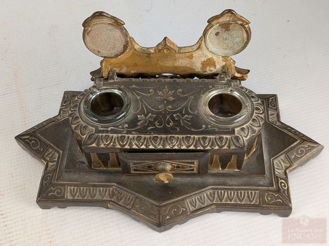 Lot # 43 - Ancien encrier Bradley and Hubbard en laiton, mesurant 10 pouces de largeur