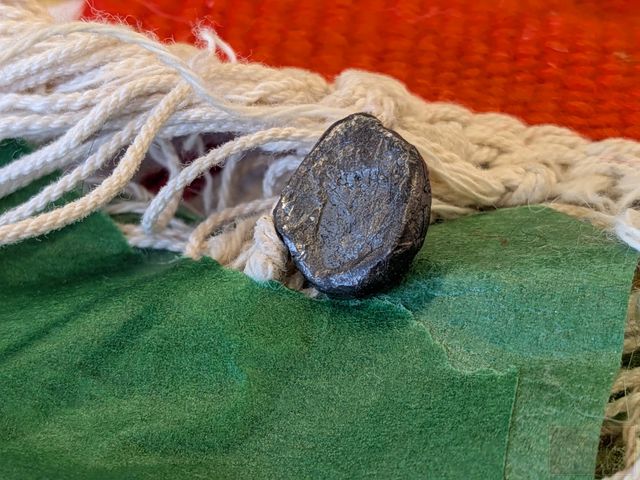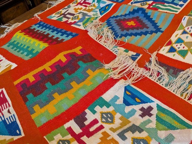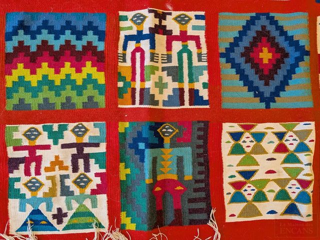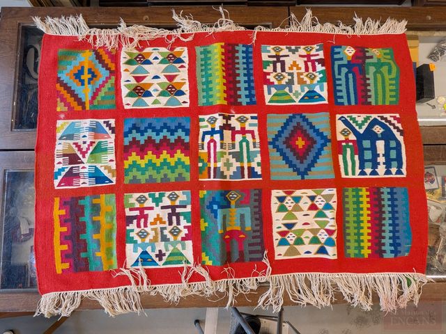 Lot # 184 - Extraordinaire tapis/tenture le Guetifa des anciennes tribus de Tunisie (les Reggam) très décoratif et épais avec des couleurs vives, authenticité certifiée avec sceau en plomb sur une frange posé par l'ONAT du gouvernement tunisien, tissé à la main en pure laine garantissant une qualité supérieure (1er choix), datant des années 1950 et mesurant 60x40 pouces sans les franges, en superbe condition, a toujours été exposé sur un mur SOLD