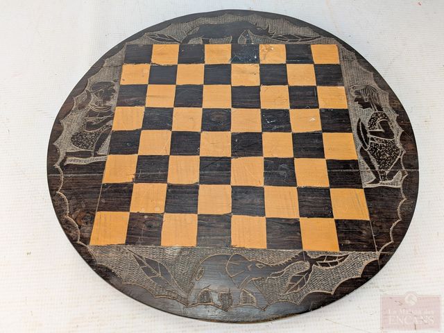 Lot # 147 - Échiquier africain sculpté sur bois, mesurant 14.5 pouces de largeur, ainsi qu'un porte-bonheur amérindien sculpté sur bois avec plumes, mesurant 14 pouces de longueur SOLD