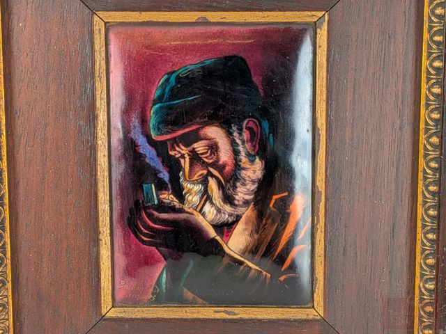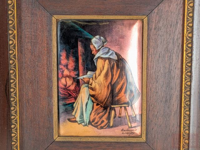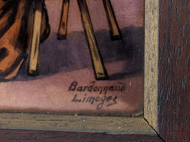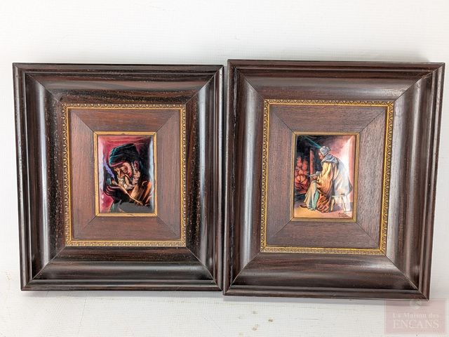 Lot # 175 - BARDONNAUD- Deux émaux sur cuivre signés, mesurant 4.25x3.25 pouces, dans de superbes cadres de style empire en bois et laiton, mesurant 11.5x10 pouces SOLD