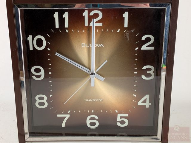 Lot # 16 - Horloge vintage Bulova à transistor avec carillons, mesurant 13.5 pouces de hauteur, fonctionnelle