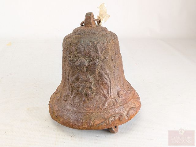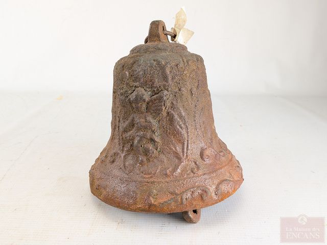 Lot # 135 - Cloche en bronze à motifs d'anges provenant du Pont de Boyaca, en Colombie, circa 1800, mesurant 7.5 pouces de diamètre SOLD