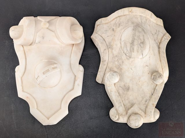 Lot # 162 - Deux appliques murales sculptées sur pierre, circa 1920, mesurant 10 pouces de hauteur chacune SOLD