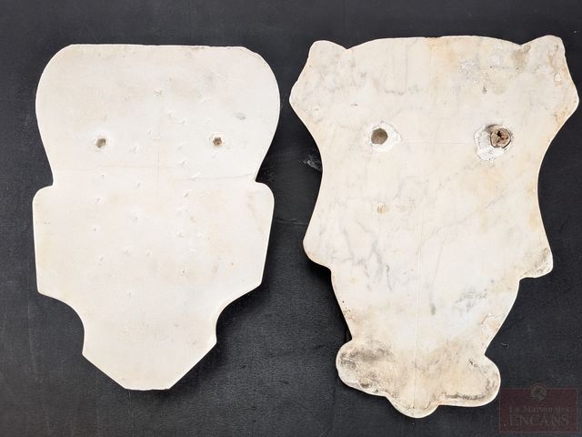 Deux appliques murales sculptées sur pierre, circa 1920, mesurant 10 pouces de hauteur chacune