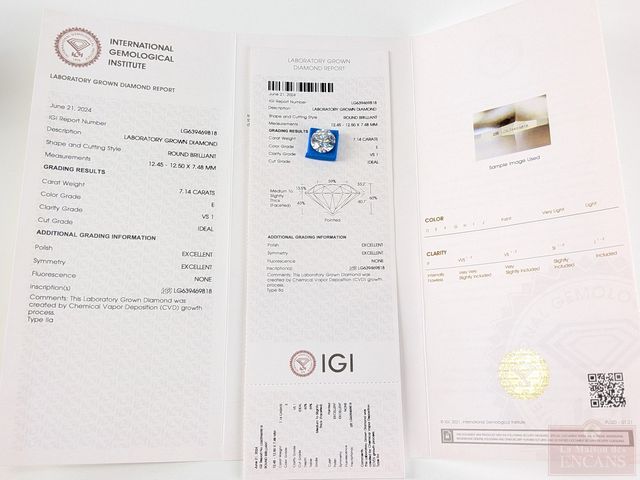 Lot # 120 - Diamant de laboratoire de 7.14 carats, coupe ronde, clarté VS1, couleur E, avec certificat IGI