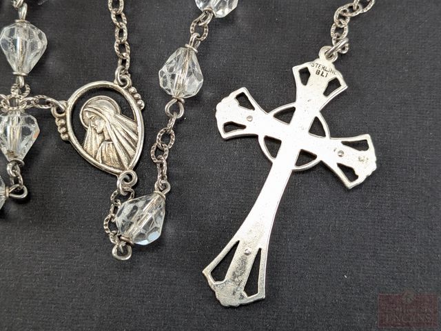 Lot # 82 - Chapelet en argent et cristal de roche, mesurant 40 pouces de longueur