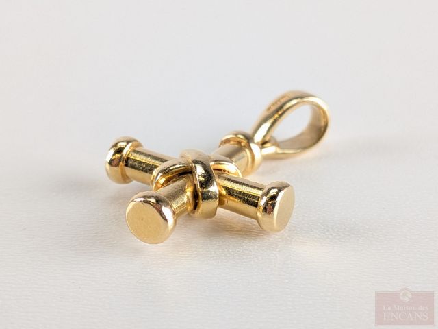 Croix en or 18k signée Bvlgari, mesurant 1.25 pouces de hauteur