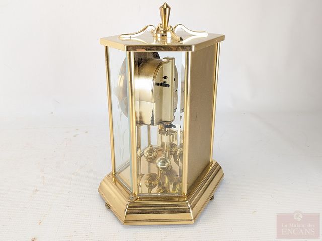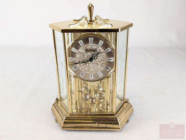 Horloge vintage Birks en verre et laiton, mesurant 10 pouces de hauteur