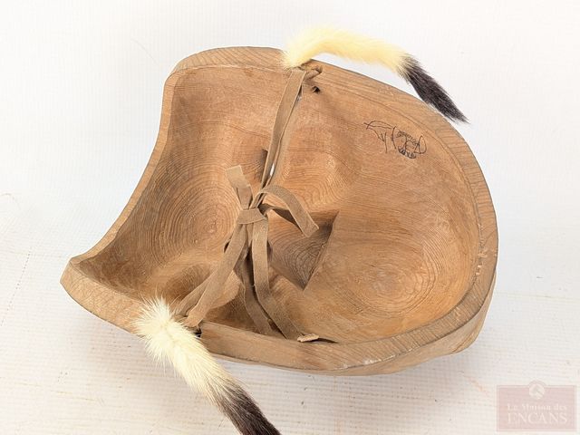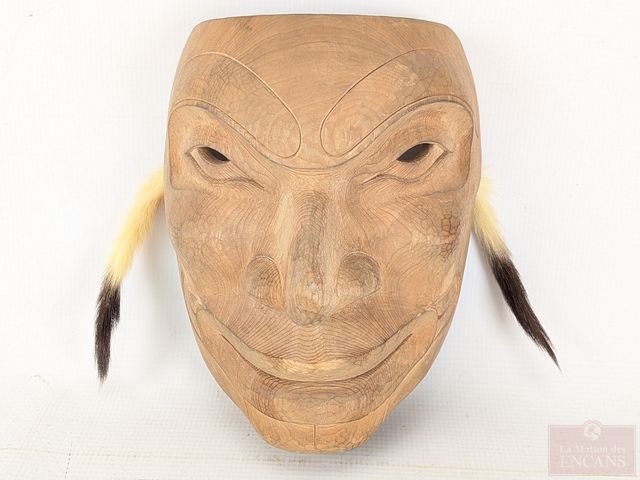 Lot # 59 - Paul JOHNNY- Superbe masque haïda sculpté sur cèdre avec queues d'hermines, signé et mesurant 9 pouces de hauteur
