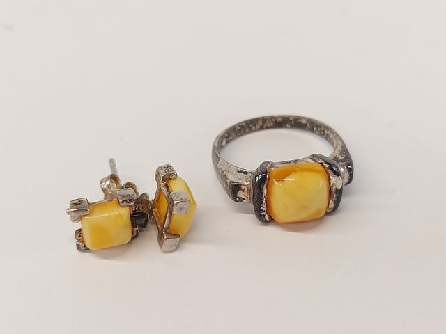 Lot # 55 - Gros lot de bijoux en argent avec ambre (ambre vert, ambre butter scotch) dont pendentif mesurant 2 pouces et bracelet mesurant 7 pouces VENDU