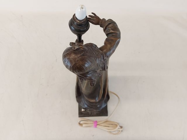 Lot # 105 - Ancienne lampe en régule représentant un enfant datant du début du 20em siècle mesurant 14 pouces de hauteur - fonctionnelle SOLD