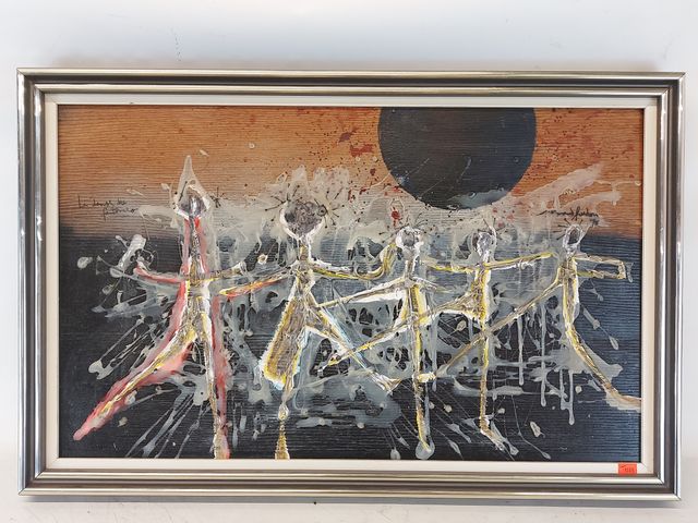 Lot # 139 - Normand HUDON - Huile sur panneau signée mesurant 14x24 titrée La danse des fantômes datée 1978 SOLD
