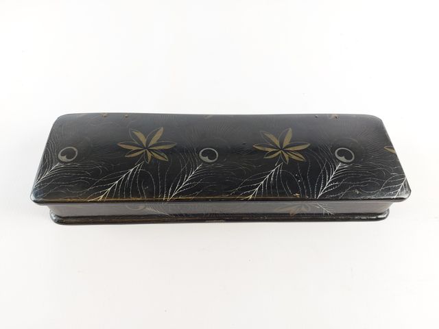 Lot # 49 - Lot de bijoux de fantaisie, comprenant émaux sur cuivre, dans un ancien coffret oriental en bois laqué, décoré à la main et mesurant 12 pouces SOLD