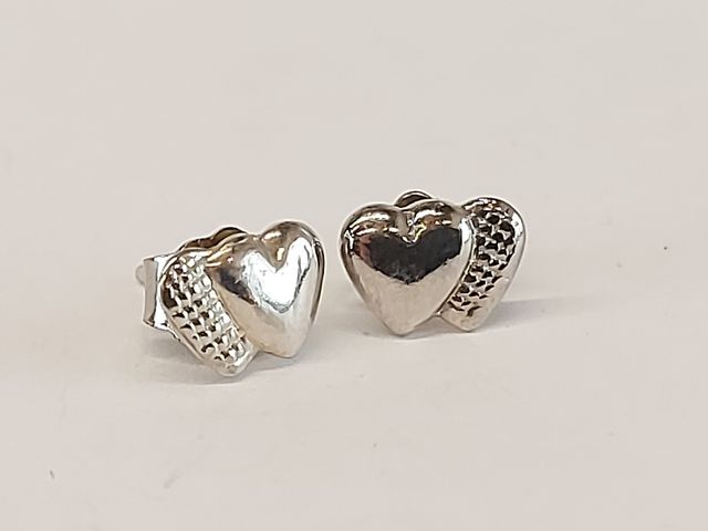 Lot # 65 - Paire de boucles d'oreilles en or blanc 10k représentant des cœurs mesurant 10mm SOLD