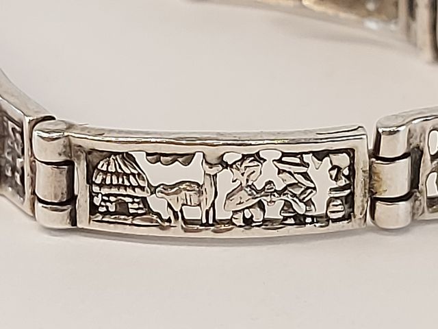 Lot # 201 - Bracelet en argent 950 mesurant 7 pouces de longueur avec nacre de perle - de style Aztèque SOLD