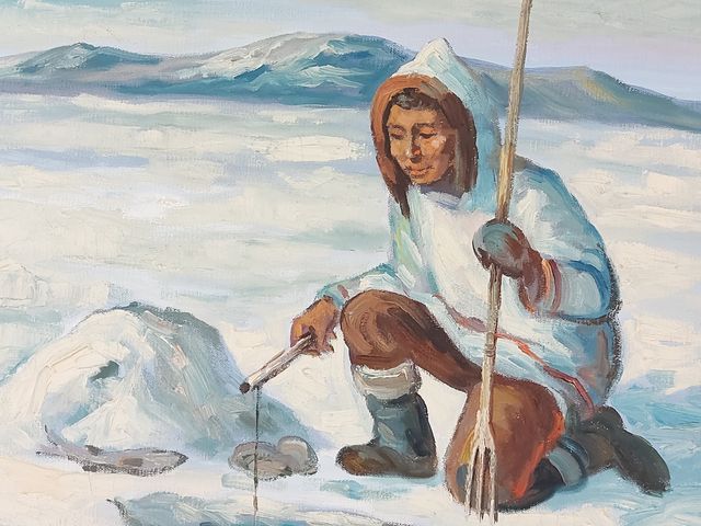Lot # 170 - G. ANATO - Huile sur toile signée mesurant 20x24 Inuit à la pêche VENDU