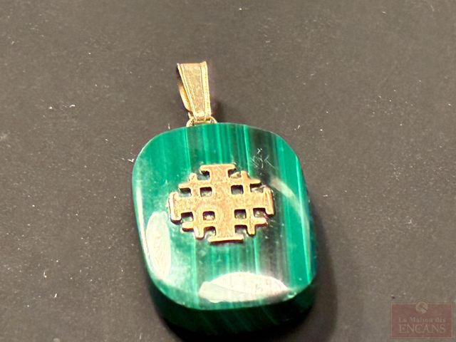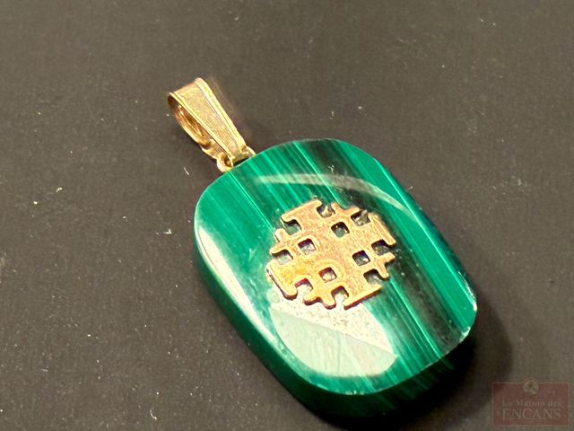 Lot # 49 - Pendentif avec pierre malachite en Or 14K