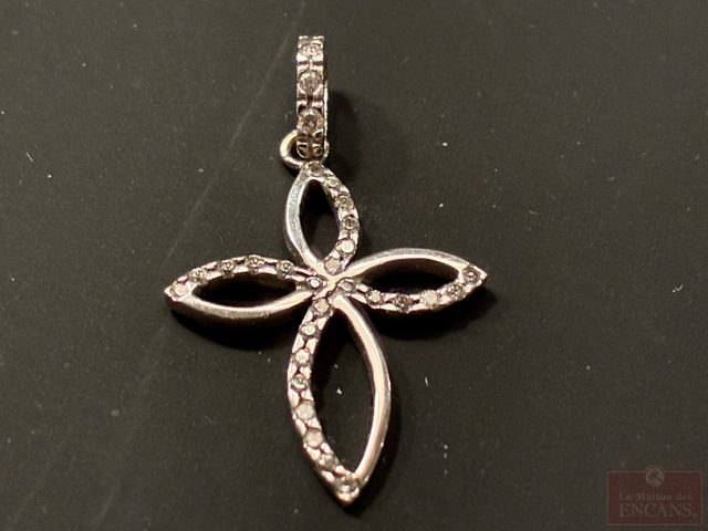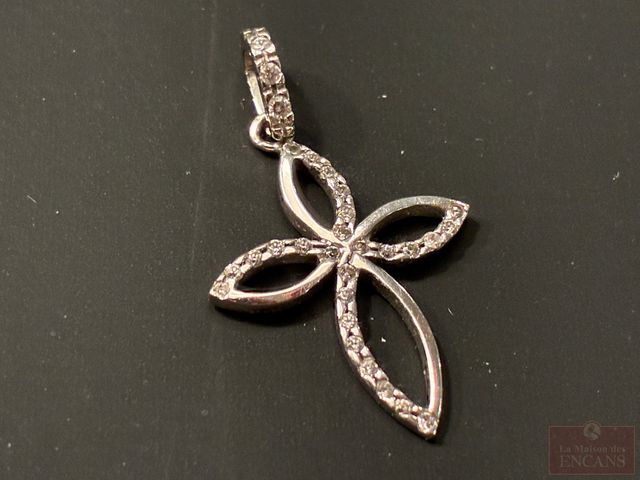 Lot # 74 - Pendentif en Or blanc 10K avec pierres