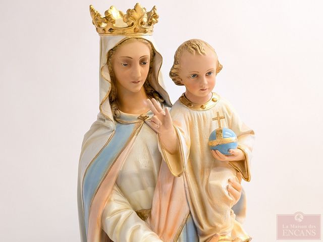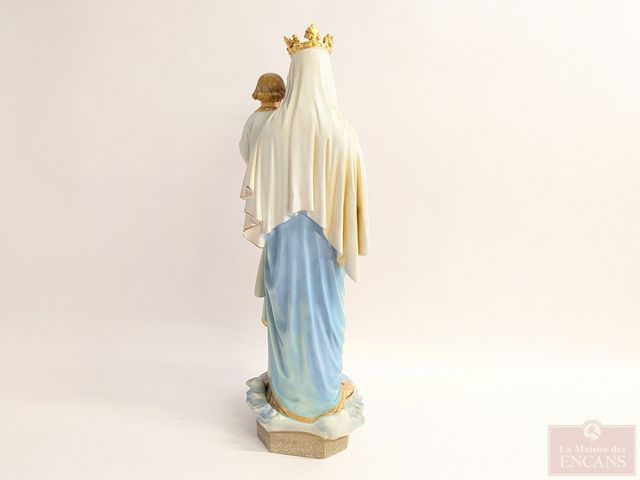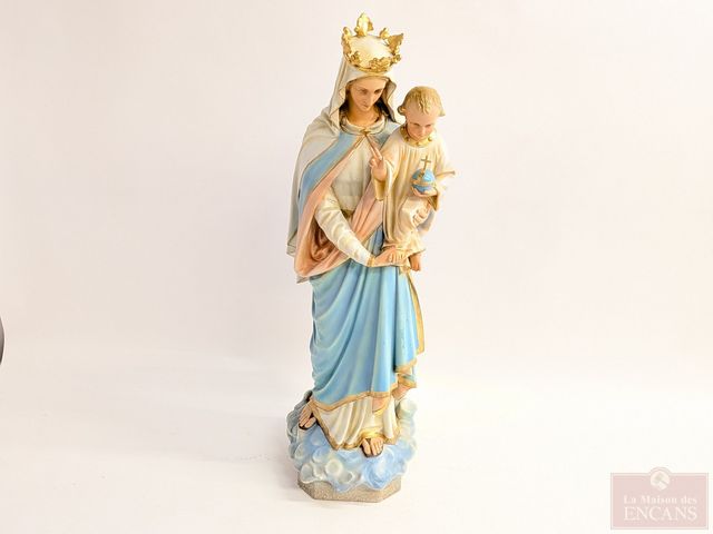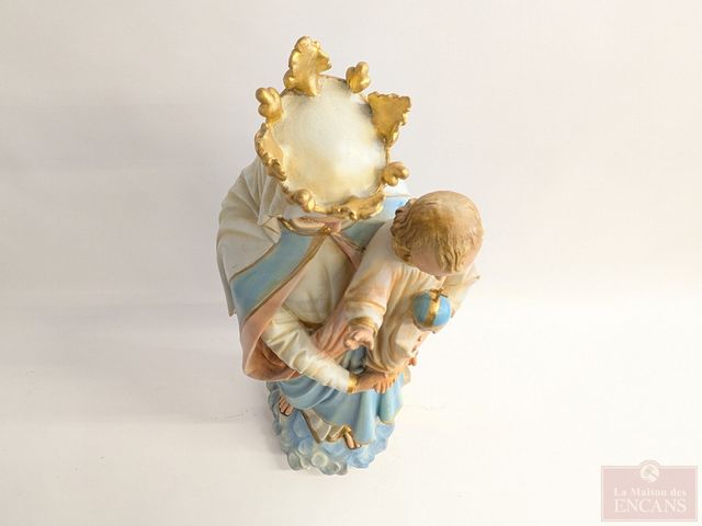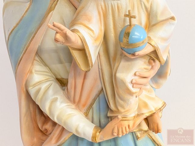 Lot # 136 - Statue en plâtre représentant la Vierge Marie avec son enfant, peinte à la main, avec sa peinture originale, datant du début du 20eme siècle et mesurant 48 pouces de hauteur SOLD